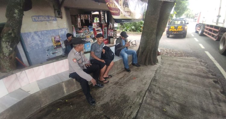Patroli Dialogis Polsek Beber Bersama Calon Penumpang Bus di Desa Beber