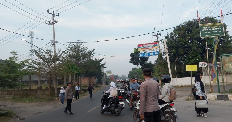 Polsek Ciwaringin Polresta Cirebon Tingkatkan Pelayanan Pagi, Laksanakan Pengaturan Lalu Lintas dan Penyeberangan Pelajar