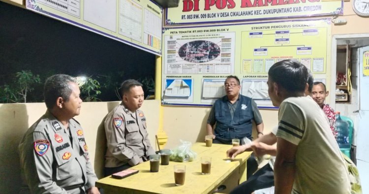 Cirebon - Dalam upaya meningkatkan keamanan dan ketertiban masyarakat (kamtibmas), Kanit Binmas Polsek Dukupuntang Polresta Cirebon AIPDA Totong Sunarta, S.H. bersama anggota melaksanakan kegiatan pembinaan Satuan Keamanan Lingkungan (Satkamling) di wilayah hukumnya, Sabtu malam (18/04/2026).