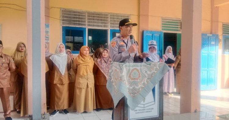 Cirebon - Dalam rangka meningkatkan kesadaran tertib berlalu lintas serta mencegah kenakalan remaja, jajaran Polsek Losari Polresta Cirebon melaksanakan kegiatan Police Goes to School di SMP Negeri 1 Losari, Senin (20/04/2026).