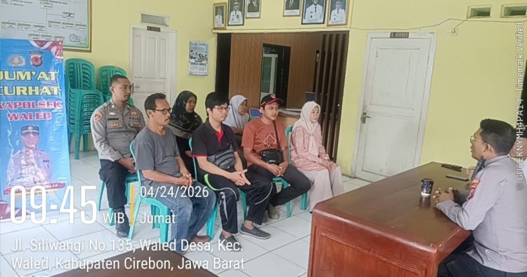 Cirebon, 24 April 2026 – Dalam rangka mempererat tali silaturahmi dan menjaga stabilitas keamanan dan ketertiban masyarakat (kamtibmas), Polsek Waled melaksanakan program Jum'at Curhat yang dipimpin langsung oleh Kapolsek Waled, AKP Moch. Fadholi, S.H. Turut mendampingi dalam kegiatan ini, Kanit Provos BRIPKA Anjar Pamungkas dan BRIPKA Lungguh Dwi Pratama. Kegiatan dialogis yang diselenggarakan di Desa Waled, Kecamatan Waled, Kabupaten Cirebon, ini menjadi forum penting untuk bertukar pikiran antara jajaran kepolisian, pemerintah desa, dan seluruh elemen masyarakat setempat.